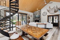 Your private 1+1 bed, 1930 sq.ft. home sits on 14 ac in an Unorganized Township. This beautiful property features mature trees throughout the majority of the property with trails throughout. The home is built with quality and comfort in mind. From entry you'll be in awe of the Main Floor open concept design with Cathedral Ceiling lined with custom stained pine imported from BC. A beautiful Gas Fireplace exudes ambiance and is hand built with granite from Manitoulin Island. Gently slide a beautiful barn door open and a large Pantry/Bar is unveiled just off the huge Kitchen and Dining Room combination with solid maple cabinetry, custom quartz countertops and Stainless Appliances. Western exposure out the patio door offers amazing sunsets with lots of fresh air. Automatic blinds can all be controlled at once or separately. This Energy Efficient home has Triple Pane Windows with Insulated Concrete Formed (ICF) walls help keep the house warm and cozy in the cold seasons and cool in the warm seasons. The Main Floor also has a Large Bedroom with Cathedral Ceiling and Two patio doors to multiple decks, The Main Floor Bathroom has a large standup shower c/w with rain head shower head and soaker tub. Also, the Main Floor has the Laundry Area, and Utility Room. The Upstairs Loft offers additional Living Space / Bedroom for overnight guests or use it as an Office. All rooms on the Main Floor are Wheel Chair Accessible. The Utility Room offers easy access to the Combination on Demand Hot Water / Hydronic In-floor Heating System. Also, there is a back-up Hot Air Furnace, c/w an attached HRV Ventilation System, for fresh air. Outside there's an Automatic Generator. Added Features include a three sided Motorized Screened in Carport, 130 ft deep drilled well and a Work Shop. Underground hydro lines to future garage site. Lots of parking for ATVs and Snow Machines. This home is located in Hunting Zone 50, Fishing Zone 15, OFSC Snow Mobile Trails, and ATV Trials are minutes away. (id:7525)