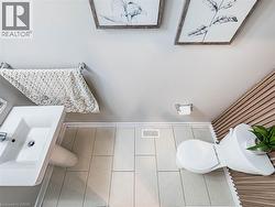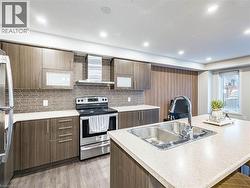 Spectacular this exquisite Freehold Townhouse, crafted by Empire Homes, is nestled in the prestigious Stoney Creek community. Spanning 1744 sqft, this stunning residence boasts 9' ceilings, 3 generously-sized bedrooms, and 3 elegant bathrooms. Step inside and be captivated by the inviting open-concept layout adorned with gleaming hardwood floors on the main level and laminate on the first floor. The spacious family/living room seamlessly flows into a sunlit, upgraded contemporary kitchen featuring stainless steel appliances, an oversized breakfast island, and direct access to a beautifully tiled patio with a gazebo perfect for entertaining guests. The master suite is your personal retreat, offering a spacious walk-in closet and a private ensuite. Enjoy the convenience of bedroom-level laundry and the elegance of upgraded light fixtures throughout. The unfinished basement offers limitless potential for future expansion. Outside, the backyard is ideal for hosting BBQs and outdoor gatherings. The water heater is owned, not rented, adding to the home's convenience and peace of mind. This home is perfectly located near major highways, schools, shopping destinations, the Go Station, golf courses, and more. Plus, it backs onto beautiful trails and waterfalls, providing a serene backdrop for relaxation and outdoor activities. Show with confidence ! (id:27)
