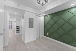 Tastefully Upgraded Tranquil Two Bed + Den Townhome With A Terrace & Juliette Balcony! An Entertainer's Dream Suite Featuring Smooth White Oak Laminate & Premium Wood Shutters Throughout! An Open Concept L-O-N-G Living/Dining Space With A Sage Green Accent Wall, Juliette Balcony, Floating Shelves & A Built-In Media Unit. The Expansive Gourmet Kitchen Features A Navajo White Subway Tiled Breakfast Bar, Quartz Counters, Stainless Steel Full-Sized Appliances, Marble-Style Backsplash & Loads Of Upgraded Cabinetry. The Primary Suite Will Sweep You Off Your Feet With A Walk-In Closet, *Bonus* Linen Closet, Floor-To-Ceiling Windows, Silver Bullet Grey Accent Wall & Walk-Out To The Private Terrace. The Second Bedroom Makes The Perfect Gym, Yoga Studio, Home Office, Little Kid's Room Or Nursery With A Large Window, Open-Faced Closet & Silver Bullet Grey Accent Wall. The Open Concept Den Features A Zen Green Geometric Wooden Feature Wall & Makes The Ideal Playroom, Home Office or Reading Nook. Relax & Unwind In The 4-Piece Bath With A Sage Green Accent Wall, 2-In-1 Subway Tiled Shower/Tub, Mirrored Medicine Cabinet, Under-Sink Storage & Bonus Shelving. Super Convenient Ensuite Stackable Laundry! Slide The Juliette Balcony Open For Fresh Air Or Retreat To The Decked Private Terrace Off The Primary Suite - Enjoy A Warm Cup Of Coffee In The Morning Or Glass Of Bubbly In The Evening!