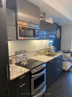 Luxurious, Modern Condo in Prime Downtown! Bright & Cozy, this Suite impresses from the moment you enter. This Gem boasts a thoughtfully designed Kitchen with Integrated Appliances & A Breakfast Nook. Experience $75k worth of sophisticated upgrades including Bespoke Pot lights & Custom Light Fixtures creating a warm Ambiance. You will Love the Spacious Renovated European Bathroom & Bedroom. The Bedroom even has a Study Area--A Real Bonus. A Rare Extra Spacious 160 sq. ft. west-facing terrace overlooking the City is perfect for catching the Sunset, Entertaining & Hosting your Summer Soirees. The unit offers ample storage, especially with the included locker. The 24-hour concierge, and world-class amenities, Nine-foot ceilings and floor-to-ceiling windows make this a stunning condo in a unique & well-managed building, "The Bond Condos." Tucked away from the hustle & bustle, this location is near the centre of one of the most desired downtown areas. Enjoy resort-style amenities including a rare outdoor pool, hot tub, rooftop terrace with dining/lounge areas, BBQ court, exercise/gym and yoga studio, steam rooms in the change rooms, golf simulator, & pool table. Boasting a 100 Walk & Transit Score, this residence offers unparalleled access to the City's finest Dining, Shopping & Entertainment Options. Easy access to the QEW/DVP. Great For First Time Home Buyers or Investors (Great Cap Rate, 6%). Don't Miss This One-of-A-Kind Special Condo!