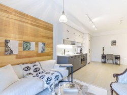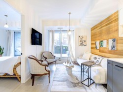 Discover your next home in Heartwood, a place where comfort, style, and beachside charm come together. This bright and welcoming 1-bedroom, 1-bathroom suite is thoughtfully designed to give you a warm, inviting space you'll love coming home to. Enjoy a generous 218 sq. ft. covered terrace with sunny south-facing views of vibrant Queen Street East. With terrace access from both the living room and bedroom, it's the perfect spot for relaxing with your morning coffee or hosting friends in the evenings. Inside, you'll appreciate the upgraded kitchen and bathroom cabinetry, quartz countertops, and modern backsplash that add a clean and polished feel. The suite also includes a 5-burner gas stove, gas wall oven, dishwasher, and a gas BBQ line hookup, perfect for cooking and entertaining year-round. Large windows fill the space with natural light, creating an airy, comfortable atmosphere. Located just steps from Woodbine Beach, Woodbine Park, the Ashbridge's Bay volleyball courts, the Boardwalk, and a variety of cafés, restaurants, and shops, this suite offers the perfect mix of relaxed beach living and everyday convenience.