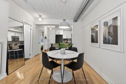 All aboard! You're right on track to finding your next home with this authentic hard loft conversion at Foundry Lofts. Once a historic train factory, this two bedroom, one bathroom condo blends industrial character with contemporary comfort. Soaring ceilings, exposed brick, factory style windows, and hardwood flooring throughout create a bold and inviting space. The moody loft vibes are complemented by a functional open concept layout with a stylish kitchen and bathroom finished with a contemporary touches. The west facing unit is tucked away from the hustle and bustle of Lansdowne, offering added privacy and a quieter living experience. With underground parking and additional locker for storage, this low maintenance lifestyle checks every box. Beyond the unit, the building is known for its warm and tight knit community and standout amenities. Residents enjoy a stunning and truly unique 16,000 square foot atrium, a fully equipped gym, theatre room, and party room. Nestled between the west end's trendy and vibrant Junction, Geary Avenue: dubbed the city's coolest street, and the exciting Galleria on the Park redevelopment, this is a rare opportunity to own in one of the city's most unique buildings. Full steam ahead to a home rich in history, big on character, and ready for its next chapter.