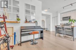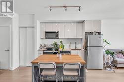 Imagine living just steps from cafés, bakeries, boutique shops, and great restaurants, where urban convenience meets a more relaxed pace. Perfectly located for those who want easy access to Toronto without the downtown intensity, Unit 412 offers the ideal balance of connectivity and comfort. This bright, open concept suite features a modern kitchen with quartz countertops, backsplash, and stainless steel appliances, flowing seamlessly into the living area and spacious den- perfect for a home office, dining space, lounge, or guest area. The sun filled bedroom overlooks a private balcony with unobstructed courtyard views, ideal for enjoying morning coffee and peaceful sunrises. Residents enjoy top tier amenities including a gym, yoga studio, media room with wet bar and billiards, playroom, 24/7 concierge, and a landscaped courtyard with BBQs. Ideally situated near Sherway Gardens, major transit routes, and Humber College's Lakeshore Campus, this home is perfect for commuters, first time buyers, investors, students and busy professionals alike. Unit 412 isn't just a home, it's a lifestyle.*Please note: some photos include virtual staging to demonstrate potential design options.* (id:7525)