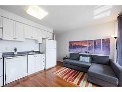 Beautifully maintained junior 1 bedroom unit with an oversized terrace looking out on the ravine and Humber trail. The well maintained and extremely clean building offers an airy gym and a great party room for your enjoyment when a little extra space is needed. Amazing location, across from major shopping centre, which includes a grocery store and close to a major highway. Public transport is at the door. Don't miss this one, why rent when you can buy? At this price it won't last. Storage locker is included in purchase with parking available to rent.