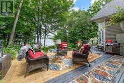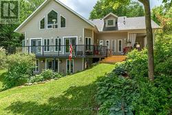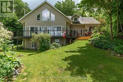 Who says you can't have it all? Gorgeous year round home on the lake & only 8 minutes to town. Pull into the driveway, step outside & onto the wrap around deck which allows for plenty of seating & breathtaking views! Take in the sounds of nature because you sure have it here on this private 1+acre lot, surrounded by trees, water & a sandy beach. Let's head into the 2400+/- square foot home which will WOW you! The oversized front foyer has plenty of windows so you can see the waterfront as well as the beautiful gardens and, it doubles as a nice office with the powder room for convenience. The exquisite kitchen will please with so many upgrades including a propane fireplace; wood cabinets with some glass doors; granite countertops, backsplash, pantry, appliance garage, wine rack & refrigerator, soft close drawers & doors, pull outs including a spice rack, trash & recycling bin, crown moldings, valances, under cabinet lighting & two stainless steel sinks(one being in the island which seats 4-6). The formal dining room & den overlook the water & are complemented by a pellet stove insert. Three bedrooms & a laundry room also on this level. The primary overlooks the water & has access to the deck; a walk-in closet; spa like ensuite with a jetted soaker tub & separate shower. The other 2 bedrooms share a lovely 3 piece bath which provides a closet for each bedroom. The family room is upstairs & perhaps the best view of all but, let's not forget the walkout basement which gives you even more potential! Worth Mentioning: Shingles 2014; Double Pane Vinyl Windows; 200 Amp Breaker Panel wired for Generac Generator; Propane Furnace 2018; Central Air 2009; HRV 2022; Owned Hot Water Tank 2023; Additional Insulation Blown into Attic & Additional Roof Vents Installed; Gaylord's Hardwood Plank Floors in Den, Dining Room, Hallway & Primary Bedroom 2019; Recessed Lighting throughout. Numerous Electrical Light Fixtures replaced including the Kitchen Fan Lights & Dining Room Chandelier. (id:7525)