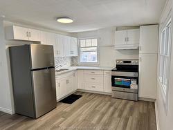 This charming renovated 2-bedroom, 1-bathroom bungalow is the perfect blend of comfort & convenience. This home features a bright and welcoming living room, an updated kitchen with white cabinetry, a good-sized primary bedroom, a second bedroom, a refreshed 3-piece bathroom and a laundry room. New heat pump installed which also provides air conditioning. Crawl space basement. Outside, you'll find a covered porch at the front of the home and the partially fenced backyard features a covered patio area and a storage shed. Located on a corner lot with 4 parking spaces available. Whether you're a first-time home buyer, an investor, or looking to downsize, this low-maintenance home is move-in ready!