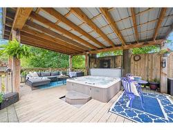 Welcome to 145 Bridgeport Rd E, Looking for a blend of comfort, privacy, and investment potential? This charming one-and-a-half-story detached home is the ultimate opportunity for first-time homebuyers seeking a mortgage helper, families in need of an in-law suite, or savvy investors eyeing a lucrative rental opportunity. A stunning large spruce tree in the front yard provides unique privacy while maintaining easy access to all the conveniences of Bridgeport Rd. The double-wide driveway accommodates five vehicles, ensuring ample space. Step into your fully fenced backyard, featuring an expansive 870sqft of deck space adorned with a 24ft custom gazebo. A luxurious eight-seat Beachcomber hot tub (2020) perfect for unwinding after a long day. An interlock stone path leading to a beautifully designed stone patio complete with a retaining wall and efficient drainage. Lushly landscaped gardens, a built-in garden shed, and a two-level deck that offers a serene escape with stunning park-like views. As you step inside, enjoy an open floor plan filled with natural light and newly renovated living spaces. Patio doors that seamlessly connect the indoor/outdoor living spaces. All windows and doors were replaced in 2022, offering modern aesthetics and energy efficiency. The main floor kitchen (2022), shines with elegant quartz countertops, featuring a breakfast bar, cozy coffee nook, a stylish tile backsplash, and abundant cupboard space. On the second level you’ll find two generously sized bedrooms, boasting original cherry wood floorboards, fresh paint throughout, along with extensive attic storage. An exterior door in the second bedroom leads to the roof below, securely designed for a bathroom addition. The lower level, provides a legal one-bedroom apartment with a separate entrance, shared laundry facilities, a full kitchen, and three-piece bath(2014). This rare property is move-in ready and minutes from uptown Waterloo, restaurants, grocery stores, schools and the LRT.