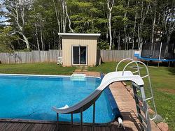 Tucked away on a quiet dead-end street, this beautifully renovated home offers the perfect blend of comfort, style, and outdoor living. Fully updated in 2016/2017 with a new roof, windows, doors, siding, and more—this home is move-in ready and designed for modern family living. Step into your own backyard paradise featuring an 8-foot deep in-ground pool, a spacious multi-level deck, and a fully wired and insulated pool house—perfect for entertaining, relaxing, or even hosting outdoor movie nights. Inside, the home boasts an open-concept kitchen with a large quartz island, sloped vaulted ceilings, and ample cabinetry. With three separate living spaces—family room, living room, and rec room—there’s room for everyone to spread out. The primary bedroom is a true retreat, complete with a walk-in closet, full ensuite bath, and a private balcony overlooking the pool area. Cozy up by the wood stove on cool winter nights, and enjoy year-round comfort thanks to the efficient heat pump. Don’t miss this rare opportunity to own a turnkey family home with a resort-style backyard in a peaceful setting.