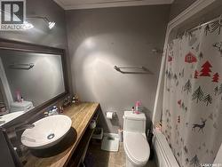 Family friendly bungalow with beautiful back yard and a double detached garage and drive though overhead doors. This property is partially fenced and landscaped for easy maintenance. The house sits on a very quiet street near the elementary school, in Tisdale, Sk. When you walk inside you'll be drawn to the spacious kitchen, and dining area. Featuring 3 bedrooms and main floor laundry, this house has everything you could need and want in your next home. Downstairs an open family games room and a generous bedroom along with a 3pc bathroom. Call today for a look, we'd love to take you through it. (id:7525)